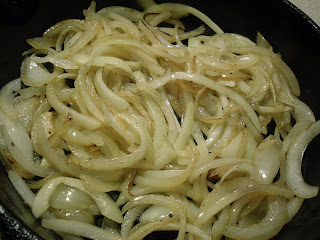 Heat an iron skillet over medium heat. Add 3 Tbs. of oil to the pan and saute the onions to desired doneness.