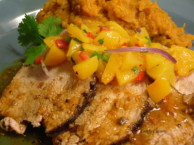 Slice pork and serve with sauce and potatoes with salsa on the side. ~Adapted from Cuisine at Home