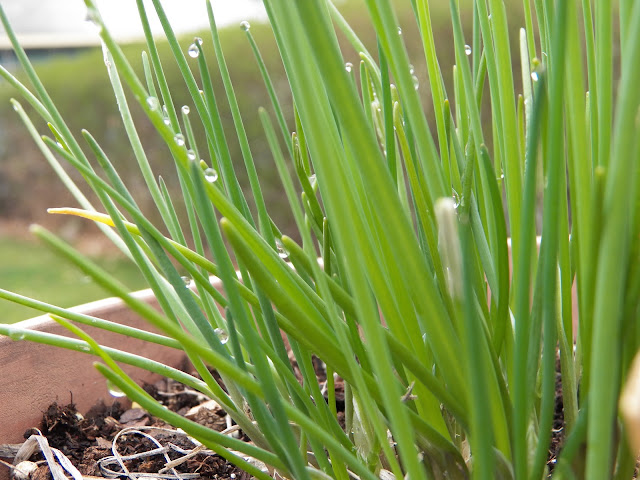 Early chives with fresh morning dew..we had alot of fog this morning!