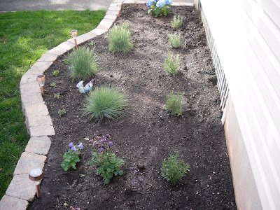 This is the beginning of my Cottage Garden. I love, love, love blue flowers! I found a garden plan on-line but most of the plants are only sold in the UK, so I had to subsitute. I can’t wait for it to fill in!