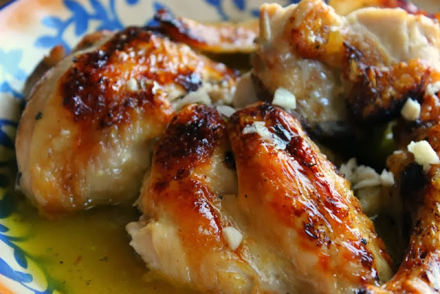 Chicken broiled with a tangy lemon, olive oil and garlic sauce.