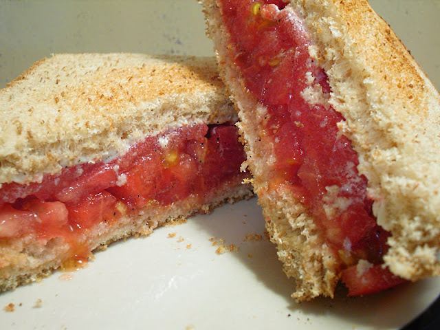 We are famous here in Jersey for our tomatoes and corn. After eating all those cardboard tomatoes throughout the winter, this is a real treat! Just sliced tomatoes, salt and pepper, a little bit of mayo on toast. I’m a happy camper!
